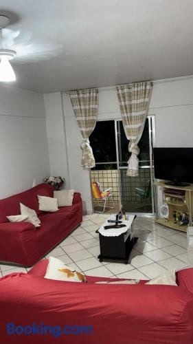 Nag-aalok ng libreng WiFi at mga tanawin ng bundok, ang Apartamento no Centro de Mongaguá ay naglalaan ng accommodation na matatagpuan sa Mongaguá, 5 minutong lakad lang mula sa Praia do Centro.