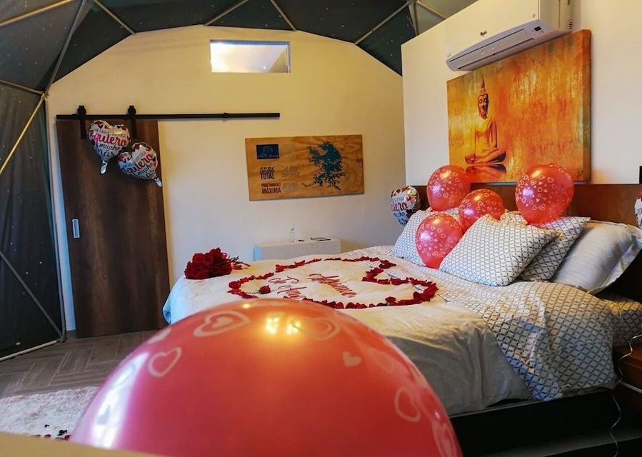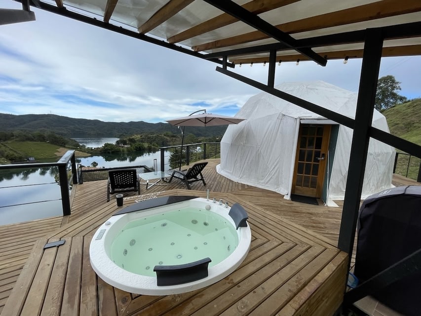 Luxurious Spa ExperienceIndulge in massages at the spa and unwind in outdoor private spa tubs for a truly pampering stay.Modern AmenitiesEnjoy complimentary Wi-Fi, concierge services, and a picnic area. Your room features premium bedding, LED TVs, and a kitchen with full-sized appliances.Scenic LocationLocated on a lake, the hotel offers stunning views and is a short walk from Peñol-Guatapé Reservoir. Explore nearby attractions like Rock of Guatapé and Piedra del Marial.Book your tranquil retreat at WHITE DOMES GLAMPING for a serene lakeside getaway.