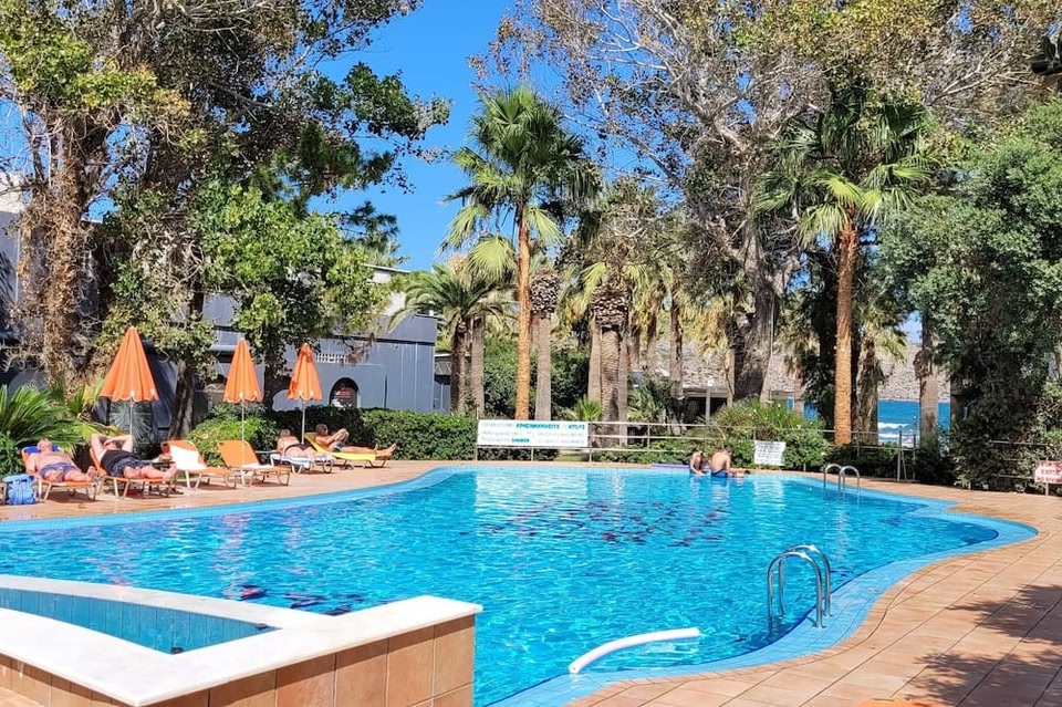 Right on the beach of Agia Marina, Marita’s Apartments is set in a lush 7,000 m² garden with two outdoor poools. One for toddlers and a big one for swimming. It offers self-catered accommodation and free Wi-Fi throughout.