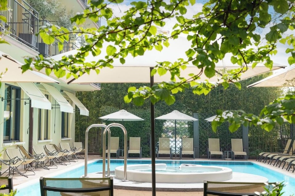 The San Pietro is an elegant hotel with its own gardens and outdoor pool. It is right in the centre of Bardolino. Rooms have air conditioning and satellite TV. San Pietro's pool has a hot tub and a counter-current machine.