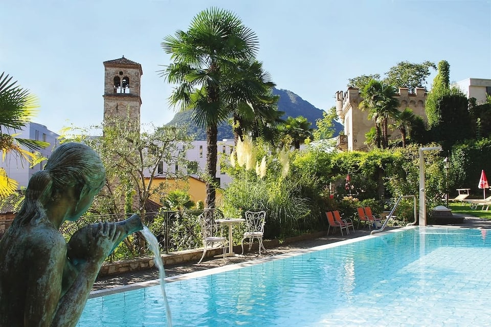 Right on the shore of Lake Lugano, the 3-star superior International au Lac Historic Lakeside Hotel offers air-conditioned rooms, a garden with an outdoor pool, free WiFi, and a lobby bar.